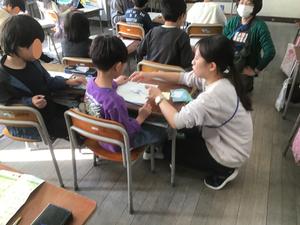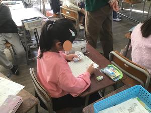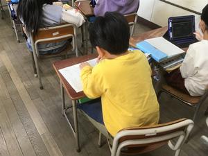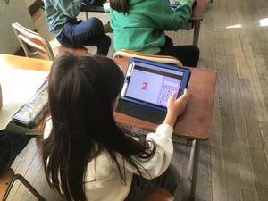 学習の方法はさまざまです。九九カードで何度も暗唱したり、ノートに書いて覚えたり、タブレットを使ってAIに問題を出してもらったりと、一人ひとりに合った方法で取り組んでいます。教室のあちらこちらから、真剣に声に出して練習する元気な声が聞こえてきます。