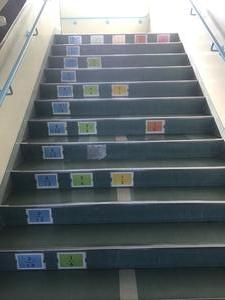 さらに、2~3階につながる階段には、高学年の学習につながる「分数」の掲示を行っています。学校全体で、子どもたちの「わかった!」「もっと知りたい!」という気持ちを育む取り組みをこれからも進めてまいります。