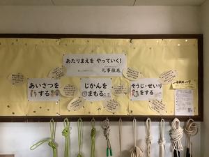 「あたりまえのことをあたりまえに行う」凡事徹底について掲示があります。一中校区として共通に育みたい力を示し、子どもたちの生活態度や日常の在り方を支えています。