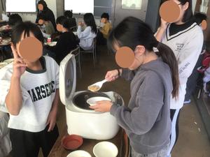 5年生では、1学期から取り組んできた「田んぼプロジェクト」で収穫したお米を使い、玄米と白米の食べ比べを行いました。
