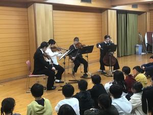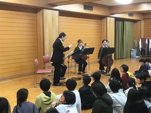 12月8日、大阪音楽大学の皆さまをお迎えし、3~6年生がサウンドスクールを体験しました。ヴァイオリン・ヴィオラ・チェロの弦楽器による生演奏を通して、クラシック曲はもちろん、映画音楽や子どもたちに人気の曲など、幅広いジャンルの音楽を演奏していただきました。