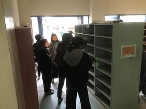 ⑤また、体育館の外には落とし物を並べ、子どもたちは自分の持ち物がないか確認しながら教室へ戻りました。まだ多く残っていますので、心当たりのあるご家庭は、お子さんにお声掛けをお願いします。