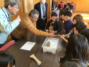 その後は、実際に土器に触れたり、割れた土器を組み立てたりする体験活動を行いました。「これ、ここにつながりそう!」等、友だち同士で相談しながら、楽しそうに活動する姿がたくさん見られました。