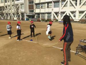 寒い時期でも、外でしっかり体を動かし、楽しみながら体力づくりに励んでいる1年生。これからも、元気いっぱい学校生活を送っていってほしいと思います。