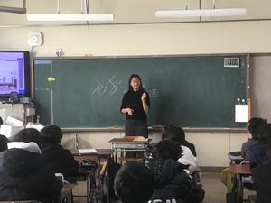 授業では、まず韓国と日本の位置関係を確認しながら、距離やつながりについて考えました。その後、文化・食・学校生活など、韓国に関するさまざまな情報を写真や映像を交えて紹介していただきました。