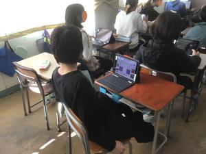 途中、さまざまな種類のキムチの話題になりました。一般的な白菜キムチだけでなく、変わり種キムチの話題に、「えー!」「食べてみたい!」と驚きや興味の声が上がっていました。さらに、タブレットを使った調べ学習にも取り組み、さまざまな種類のキムチを主体的に調べる姿が見られました。