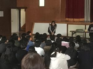 講演では、土井さんの弟・大地さんが小児がんにかかり、何度も入退院を繰り返した末に亡くなられた経験が語られました。そのつらい経験を通して、土井さんは「命の尊さ」「当たり前の日々の大切さ」「周りの人や自分を大切にすること」について、子どもたちにやさしく、そして力強く伝えてくださいました。