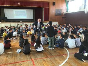 先日、1~3年生を対象に「スマホ安全教室」を実施しました。講師として、KDDIの沼本さんをお招きし、スマートフォンやケータイの安全な使い方について学びました。