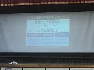 最後に、困ったときに相談できる窓口などが紹介されたリーフレットについて説明がありました。スマートフォンはとても便利な道具ですが、使い方によっては大きなトラブルにつながる可能性もあります。そのため、ルールを守って使うことや、困ったときには一人で抱え込まずに周りの大人に相談することの大切さを学びました。