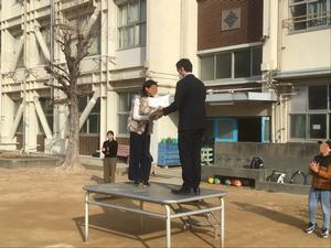 はじめに、「ビブリオバトル」の表彰を行いました。今回は、5・6年生の各クラスで優勝した代表4名が表彰されました。4名とも堂々とした姿で賞状を受け取る姿がとても印象的でした。今回、賞を受けた人も、惜しくも受けられなかった人も、これまでの挑戦や努力はかけがえのない経験です。この経験をこれからの学びへとつなげていってほしいと思います。