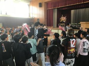 これまでお世話になった先生方のお話を、子どもたちは真剣な表情で聞いていました。先生方からのあたたかいメッセージに、涙ぐむ姿もあれば、笑顔で手を振る姿もあり、それぞれの思いをもってお別れの時間を過ごしていました。