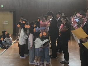 これまでお世話になった先生方のお話を、子どもたちは真剣な表情で聞いていました。先生方からのあたたかいメッセージに、涙ぐむ姿もあれば、笑顔で手を振る姿もあり、それぞれの思いをもってお別れの時間を過ごしていました。