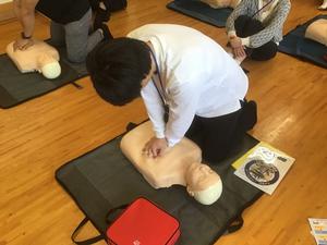講習会では、傷病者を発見した際の初期対応をはじめ、AEDの使い方、喉に異物が詰まった場合の救命処置など、さまざまな場面を想定した対応について学びました。実際の場面を思い浮かべながら、一つひとつの手順を確認し、教職員一同、緊張感をもって研修に臨みました。