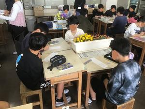 6年生の図工では、「季節を感じて」をテーマにした学習に取り組んでいました。図工室には、楽しい雰囲気の中にも、作品づくりにじっくり向き合う6年生の集中した姿がありました。