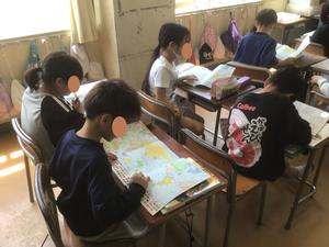 学習の中では、「オーストラリア」と「オーストリア」を間違えそうになったり、似た名前の国があることに気付いたりと、さまざまな発見があったようです。地図帳を広げながら、「こんな国もあるんだ」など、興味をもって取り組む姿が見られました。