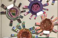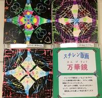 スチレン版画 万華鏡・・・パスで規則正しいもようをデザインした画用紙を刷り紙に、スチレン回転版画にチャレンジしました。