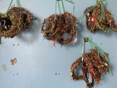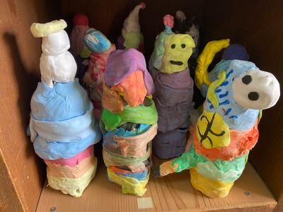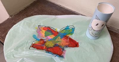 2年生 のりのりお花紙 くるりんぱ(トイレットペーパーの芯)
