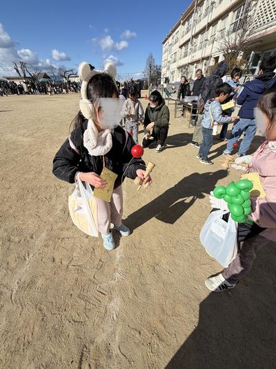 1月11日(日)に上野フェスタが行われました。地域の方々がいろいろなブースを作ってくださり、とても寒い一日でしたが、子どもたちは元気に遊んでいました。