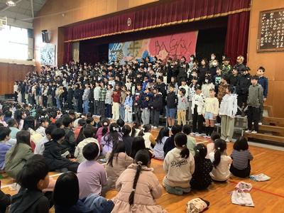 6年生を送る会では各学年から「ありがとう。」の感謝の気持ちを込めて歌を送りました。