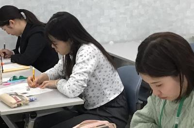 敬語の作り方を学んだ後、塾生達は協力しながら、敬語のワークに取り組みました。