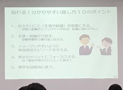 また、「避けたいビジネス用語」、外国の方への「やさしい日本語」、「クッション言葉」、「ビジネスでのコミュニケーション」など、多くの内容についても教えてくださいました。