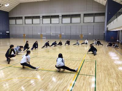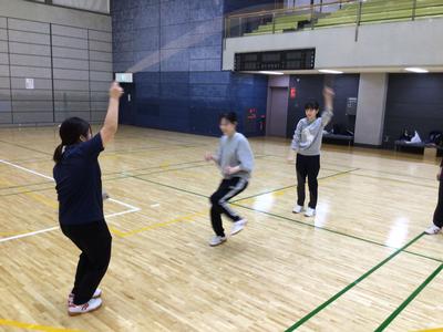 まずは準備体操。受講生が一人ずつ体操を考え、みんなで体をほぐしました。