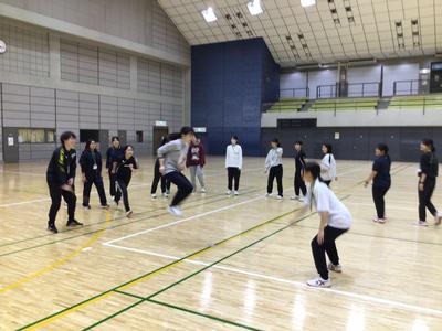 これは難しい技で、「初めて知りました。」という受講生も多かったです。この技は時間をとって円になって教え合いました。その中で、できるようになった人を中心に教え合いをする姿がありました。金森先生も、「自分ができるようになる喜びはもちろん、自分が教えて友だちができるようになる喜びもある。」とおっしゃっていました。そういった活動の積み重ねが集団の雰囲気をよくしていくこともあると、実感をもってわかってもらえたのではないかと思います。