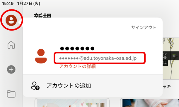 学校のMicrosoft365でログインしているか確認したい